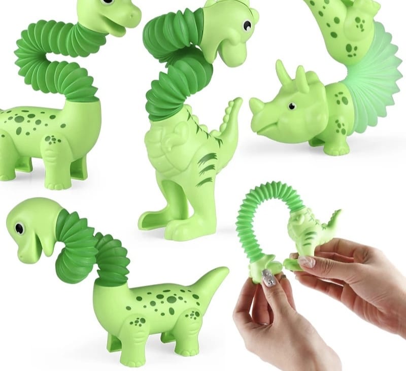 O conjunto inclui três dinossauros maleáveis feitos de PVC sólido, material ambientalmente amigável, durável e seguro. Estes brinquedos são projetados para serem dobrados, torcidos e moldados, permitindo múltiplas formas e movimentos que encantam crianças e adultos. Ideal para o desenvolvimento sensorial, também serve como um eficaz brinquedo antistresse, auxiliando no foco e relaxamento.