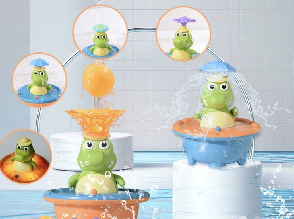 O banho vai virar o momento preferido do dia com a encantadora Fonte Divertida Jacaré! Com um design lúdico e colorido, esse brinquedo em formato de jacaré com guarda-chuva transforma qualquer recipiente com água em um verdadeiro show de bolhas e jatos d’água.