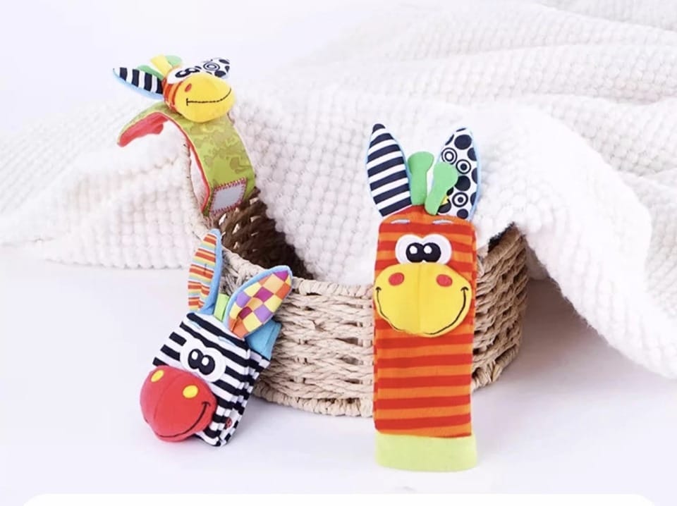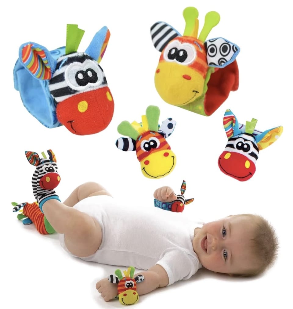 Ideal para bebês de 0 a 12 meses, cada peça é feita com tecido macio e materiais livres de produtos químicos, oferecendo conforto, segurança e muita diversão. Basta vestir as pulseiras nos bracinhos e as meias nos pezinhos, e observar o encantamento do seu bebê ao se movimentar e ouvir os suaves sons dos chocalhos.