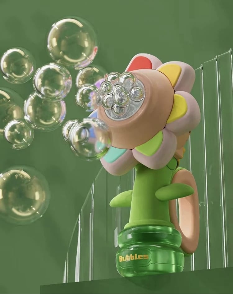 Projetada para crianças a partir dos 3 anos, a Flor Mágica sopra bolhas coloridas com apenas um clique! Os modelos mais avançados contam com três níveis de ajuste, que ativam luzes, movimento da flor e o sopro de bolhas — tudo para uma experiência ainda mais mágica!