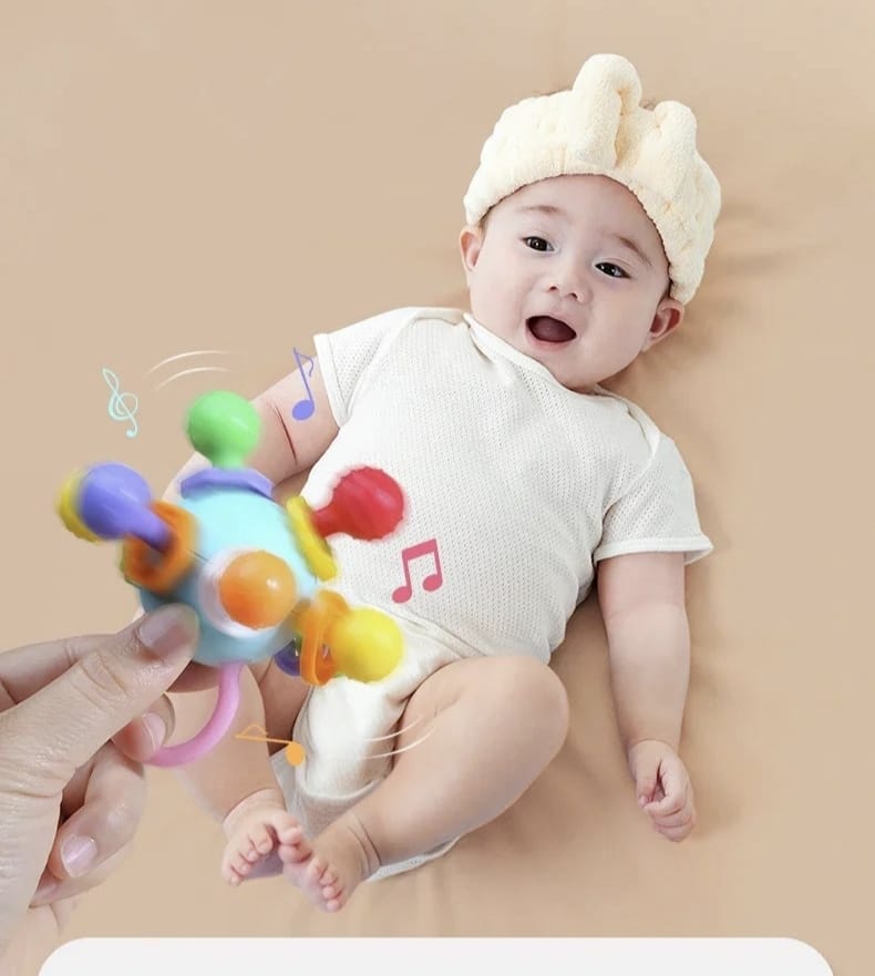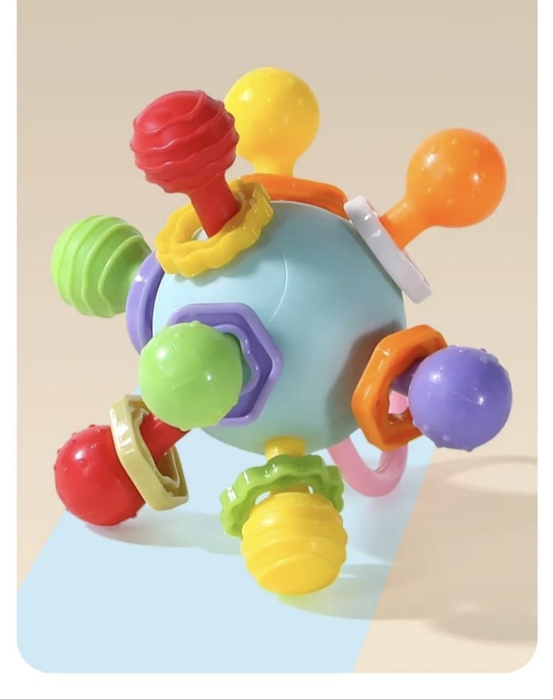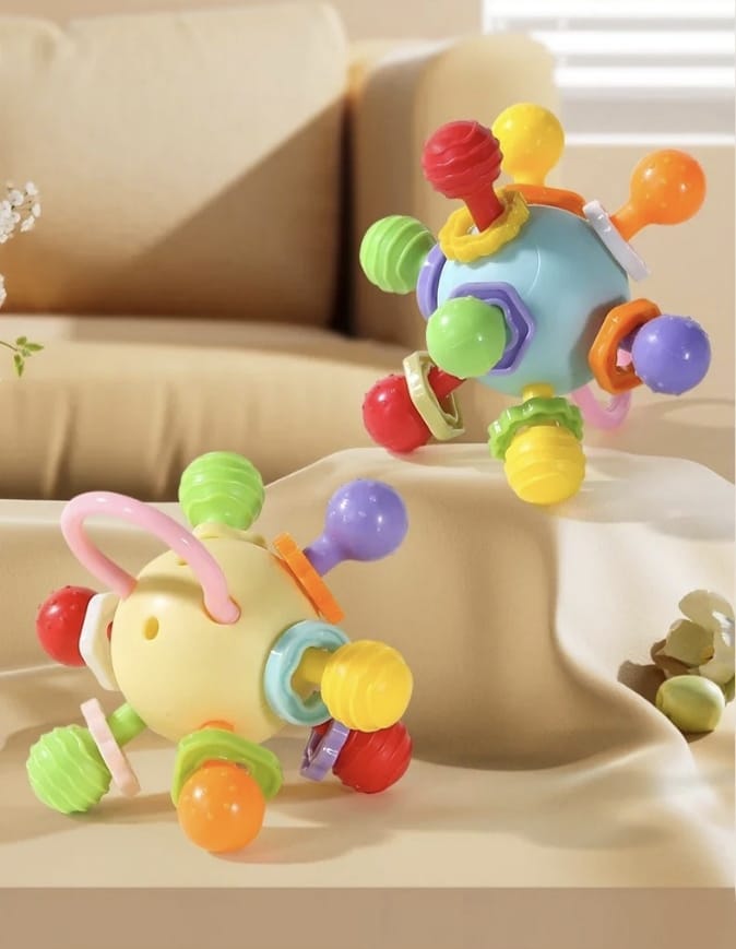 Projetada para estimular o desenvolvimento motor e sensorial dos pequenos, essa bolinha mágica é macia, segura e colorida — perfeita para mãos curiosas e bocas exploradoras 💕